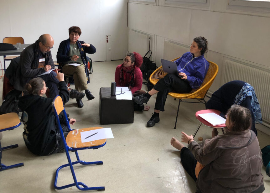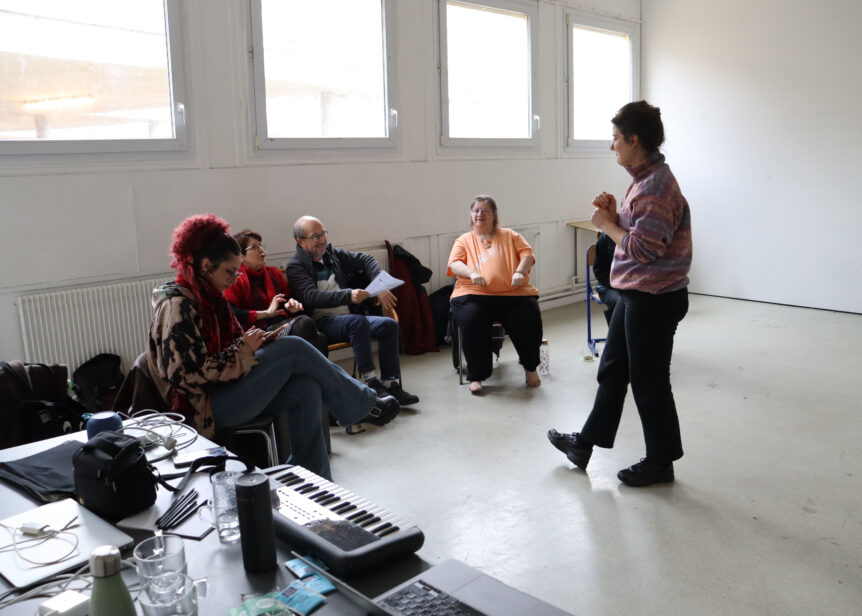 Dans le cadre de la résidence curatoriale de Marie Plagnol, Anna Holveck propose en février 2026 un workshop autour de la rencontre par la voix. Pendant trois jours, un groupe de six inconnu·es est invité à s’écouter et à chercher ensemble les spécificités de chaque voix, de leurs endroits de confort et de puissance jusqu’aux frontières de leurs fragilités. Par l’écoute et la pratique il s’agit de se rencontrer autour du timbre et du grain vocal de chaque participant·e. Entre échauffements, improvisations sonores, jeux acoustiques et discussions, ce workshop offrira au groupe le temps de construire une confiance et qualité d’écoute partagée. Chaque participant·e est invité·e à venir avec une chanson qui lui tient particulièrement à coeur et qui emploie sa voix à un endroit de plaisir, de beauté et de confort particulier. Chacun·e est également invité·e à venir avec une chanson qui met sa voix en fragilité ou en échec à un endroit qui lui semble frustrant. Toutes ces expérimentations collectives nourriront une composition partant des trouvailles vocales du groupe. En partant des chansons de chacun·e, de leurs mélodies étendues, élargies, allongées, découpées, cette pièce travaillera à l’apparition par transparence des spécificités de chaque voix.